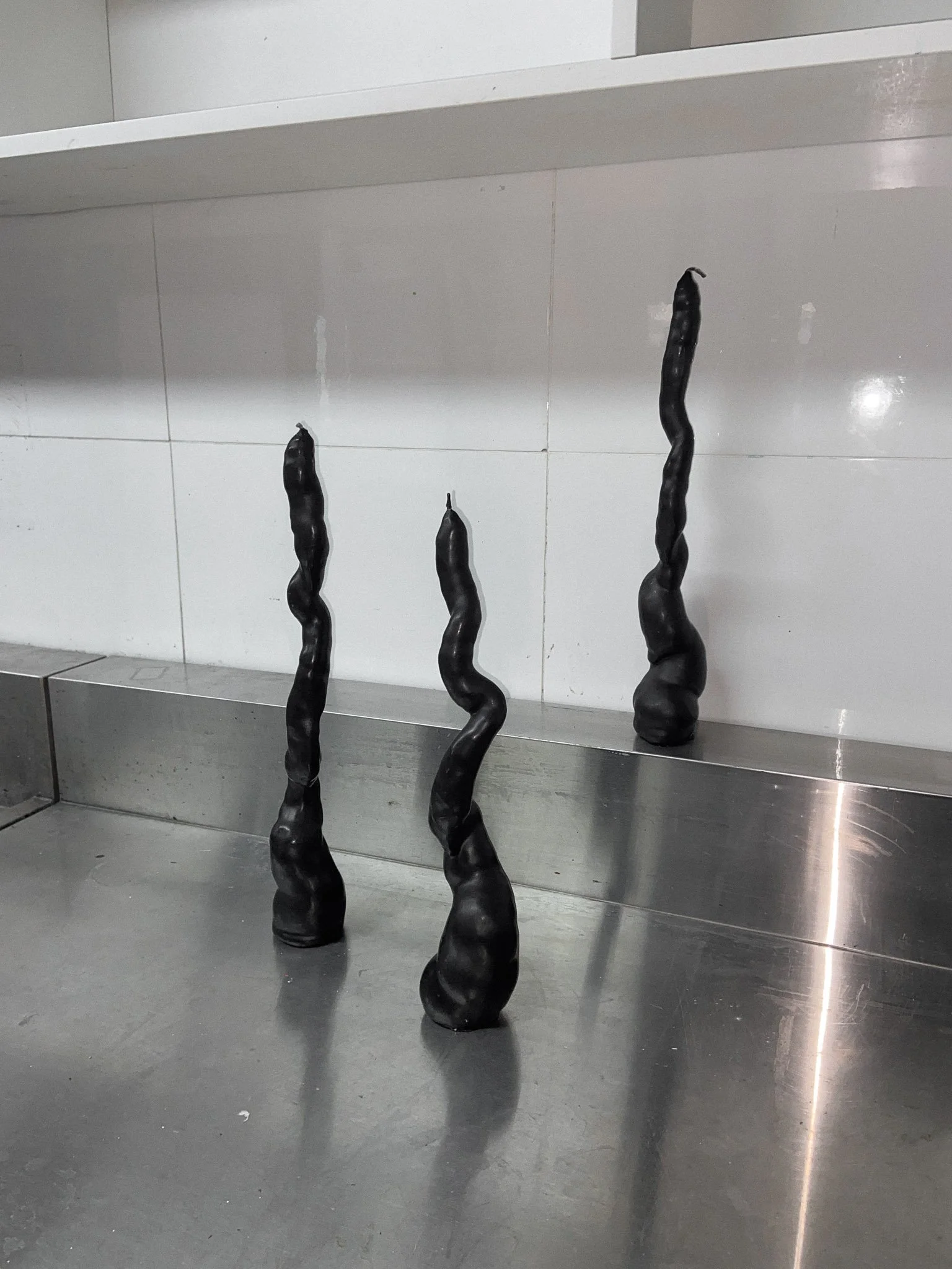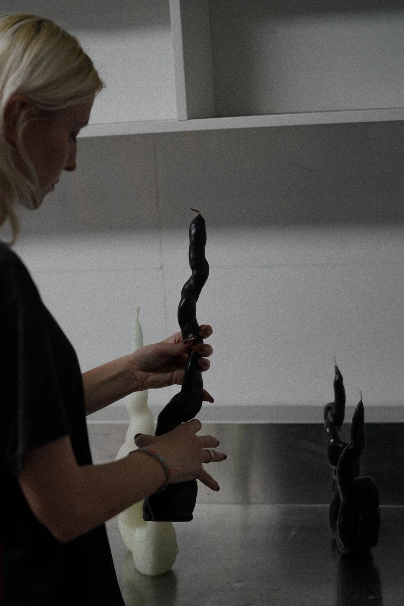 Each candle is crafted from refined, dyed beeswax, meticulously hand-dipped over several days by the artist. Every wax form is shaped and sculpted entirely by hand, ensuring each piece is singular and alive with its own character — never cast, never repeated.
