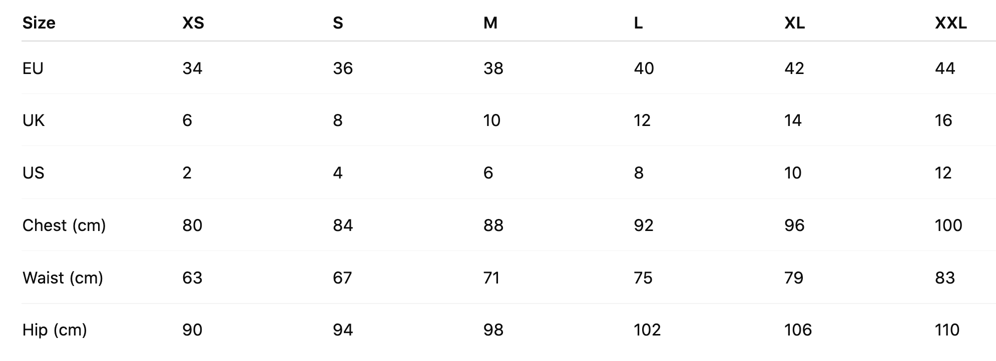 Each latex garment is handcrafted to order for a sculpted, second-skin fit. We currently offer sizes XS–L. Please use the measurements below to find your best fit.